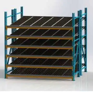 Carton flow racking can be either a stand-alone unit or a fully integrated system that operates in the concept of a first-in, first-out (FIFO) inventory management process. Many of these systems offer pallet storage at the top of the rack with carton-picking abilities on the bottom half. Once a worker removes a carton from the storage rack, the next carton automatically flows to the forefront, minimizing a picker’s retrieval times and maximizing process efficiency.