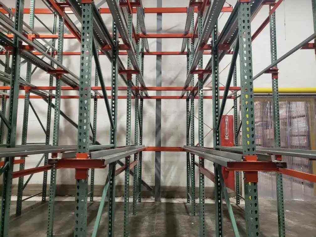 A drive-in rack system allows you to store pallets multiple positions deep, loading and retrieving pallets from a single entrance. It relies on pallet racking components such as uprights, top tie beams and pallet support rails to provide the height and depth needed for deep storage.